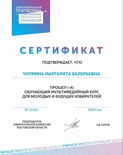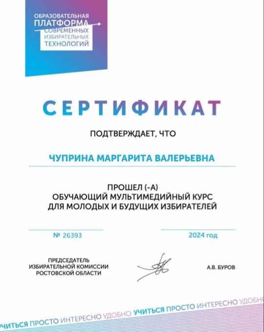 Обучающиеся 9-11 классов нашей школы на образовательной платформе "Современных избирательных технологий" прошли "Обучающий мультимедийный курс для молодых и будущих избирателей". Данный курс позволяет помочь будущим избирателям более чётко сформулировать представление об избирательном процессе. Охват мероприятием - 92 человека. < ... Читать дальше » |