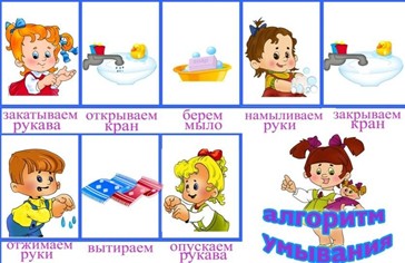 Малыши очень внимательны к поведению и поступкам родителей, поэтому взрослым самим необходимо научиться мыть руки, а также обучить этим навыкам своего ребенка. У нас в детском саду перед умывальниками висит памятка в картинках, обучающая правильному мытью рук.