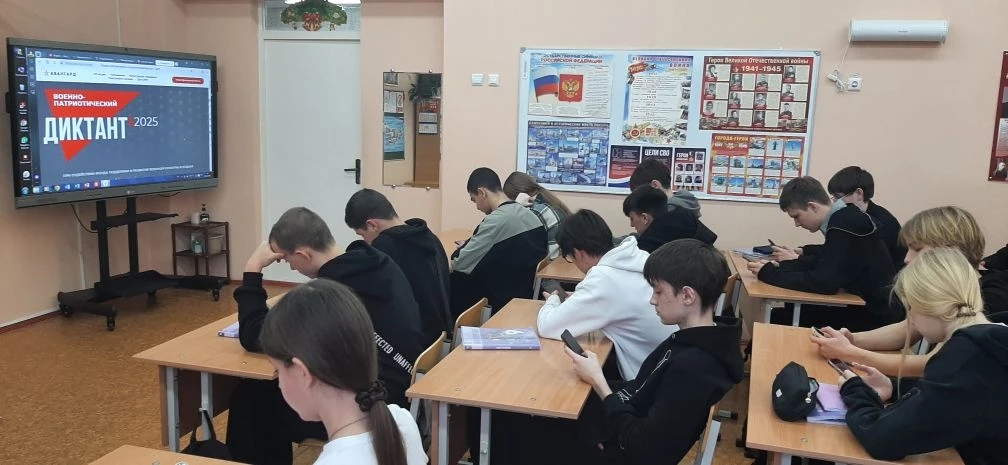5 декабря 2025 года учащиеся нашей школы приняли участие в IV Ежегодной всероссийской просветительской акции «Военно-патриотический диктант – 2025», организованной автономной некоммерческой организацией «Учебно-методический центр военно-патриотического воспитания молодежи «Авангард» в соответствии с планом мероприятий Министерства обороны — Российской Федерации, посвящённых Году защитника Отечества. Целями проведения диктанта являются: популяризация военно- патриотического образования и воспитания граждан, повышение уровня патриотизма, развитие ценностного отношения к сохранению культурного многообразия, наследия и истории народов Российской Федерации. В современных условиях эта работа приобретает особую актуальность, формируя у подростков и обществе в целом осознанную гражданскую позицию, основанную на знании истории страны, ее культуры и традиций. В акции приняли участие педагоги и обучающиеся 8-11 классов в количестве 90 человек.