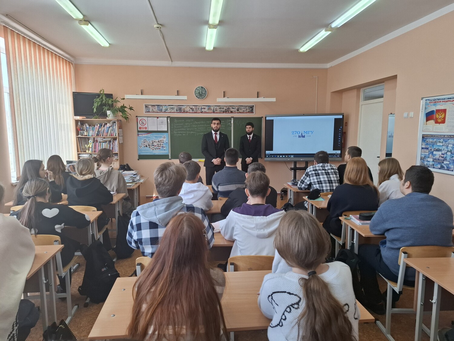5 февраля 2026 года представители филиала Московского государственного университета имени М.В.Ломоносова в городе Грозном провели для обучающихся 9-11 классов профориентационные мероприятия «Стань студентом МГУ». В ходе встречи школьники познакомились с образовательными программами университета, узнали о возможностях поступления и перспективах обучения в одном из ведущих вузов страны. Профориентационные мероприятия помогают ребятам определиться с выбором будущей профессии, а встречи с представителями вузов вдохновляют на достижение новых академических высот. Благодарим всех участников за активное участие и интерес к своему будущему!